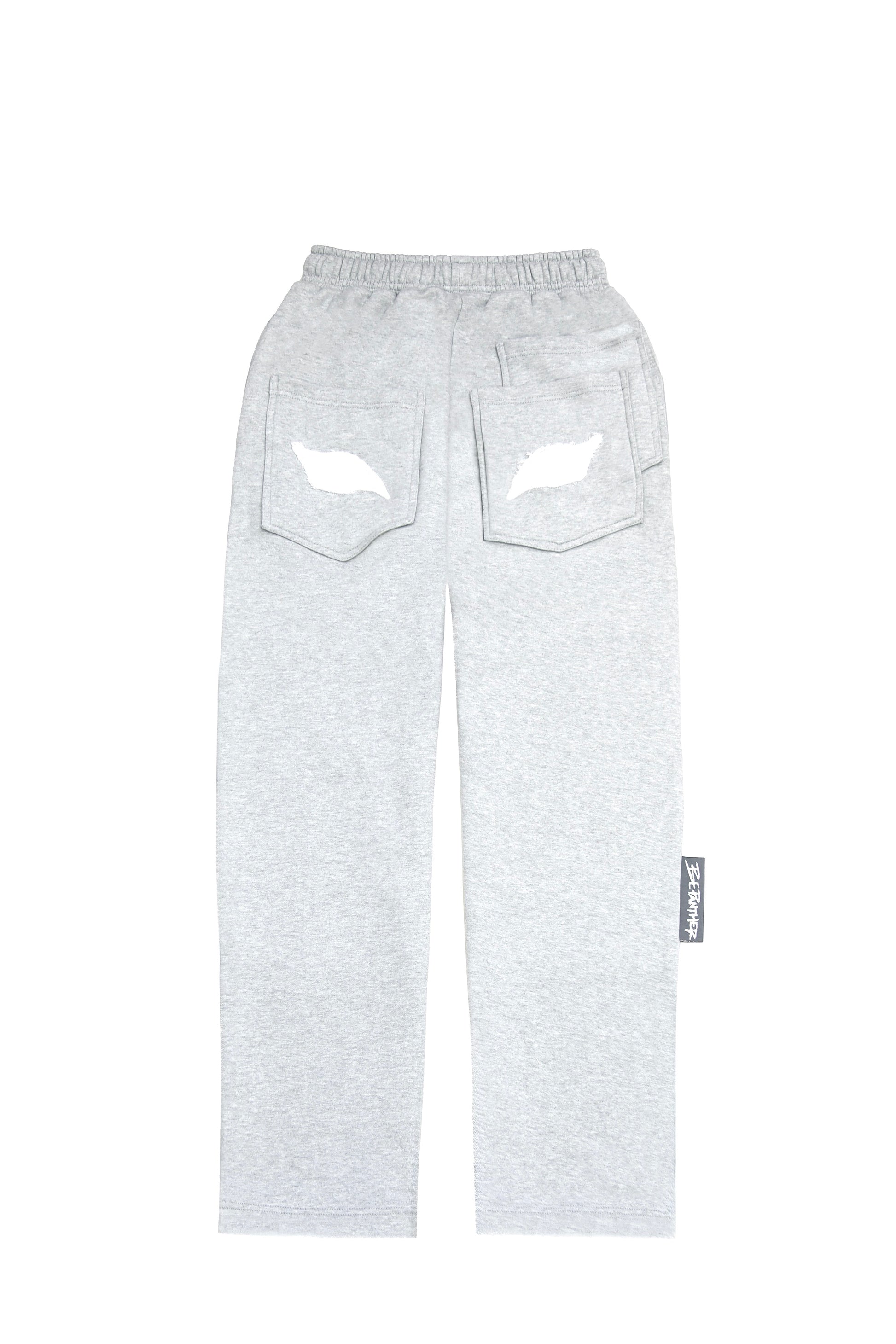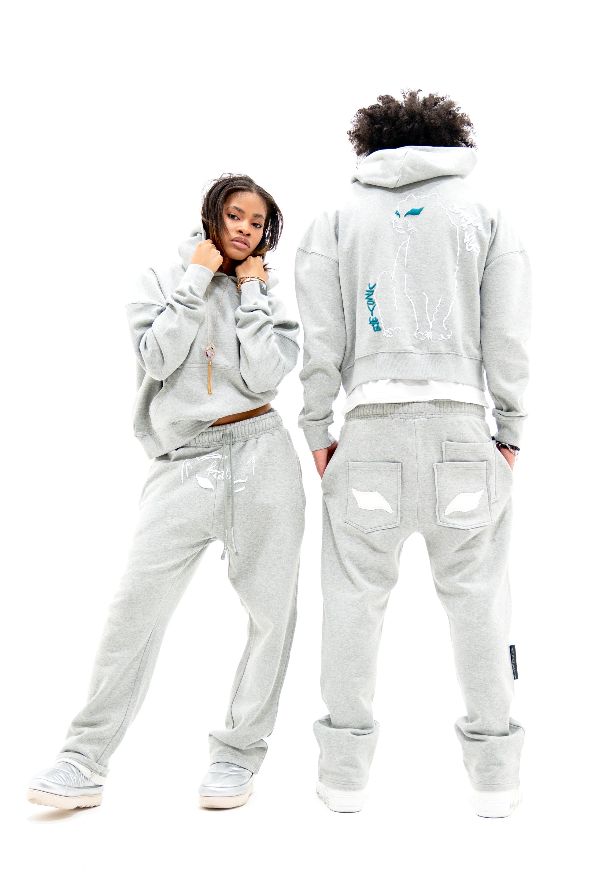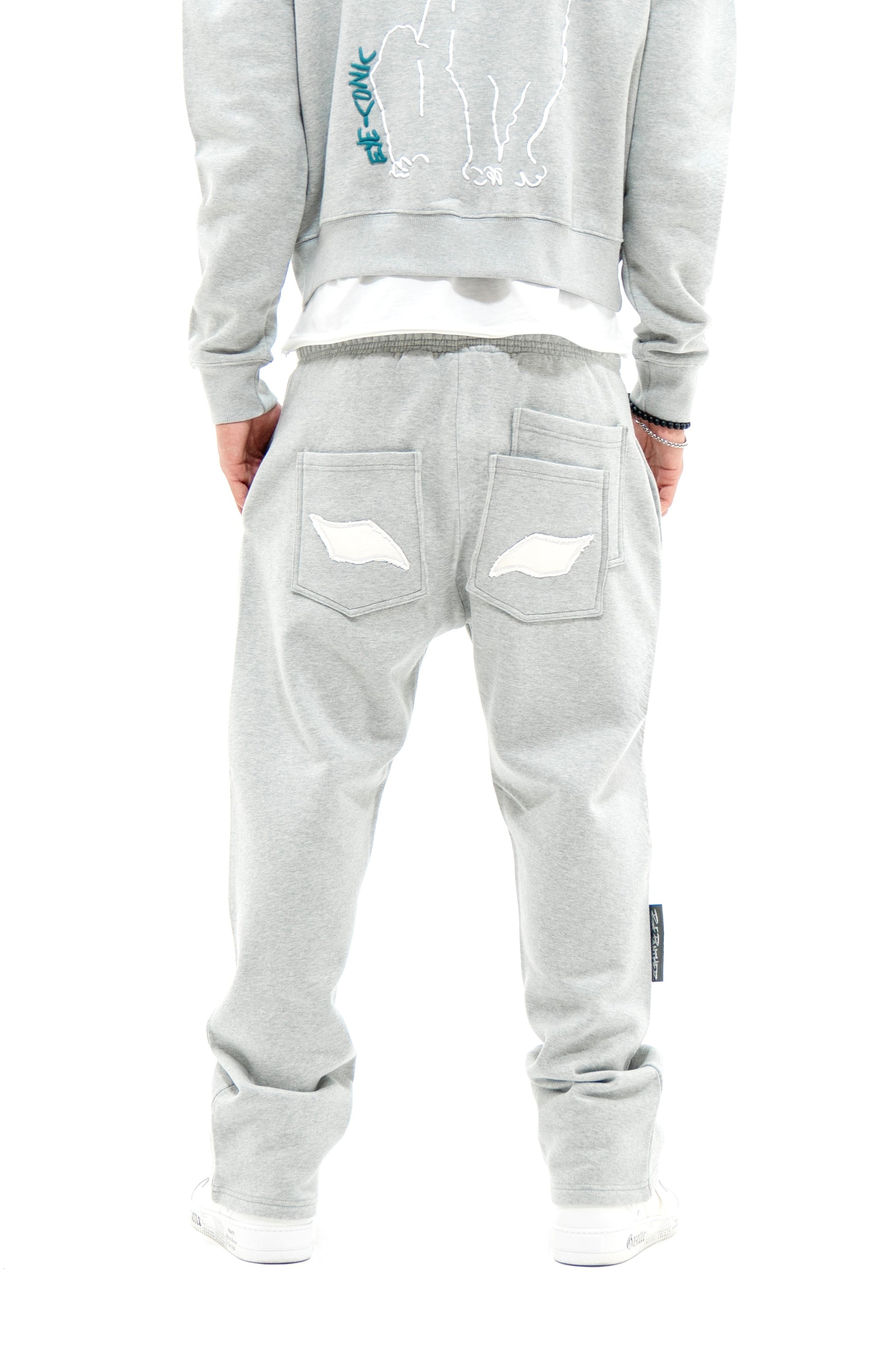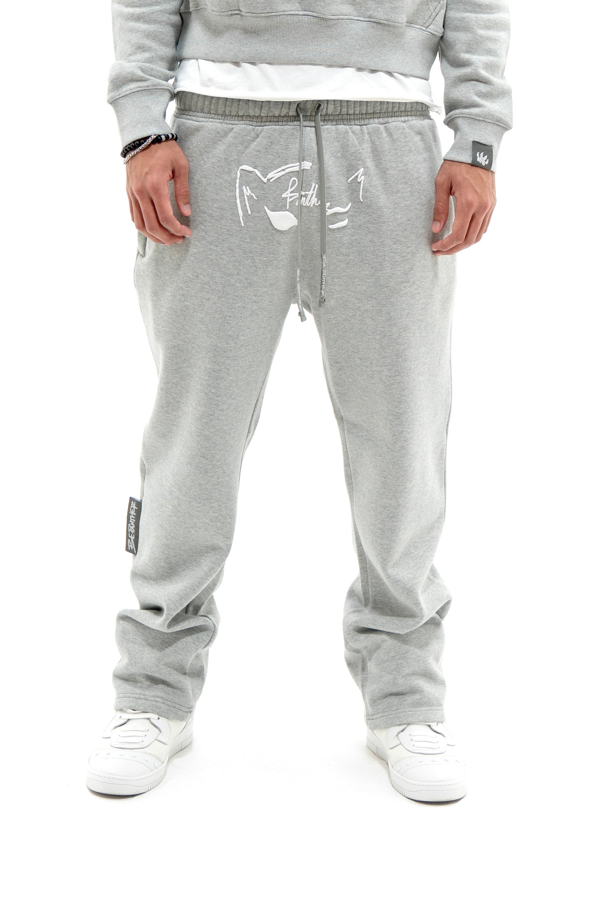 Embroidered raw-edge signature Panther Eyes on back pockets